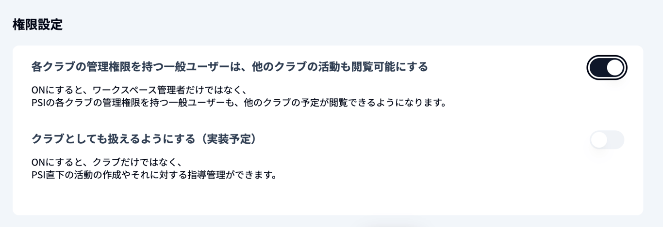 ONにすることで、ワークスペースの全ての他クラブの活動予定について閲覧をすることができます。