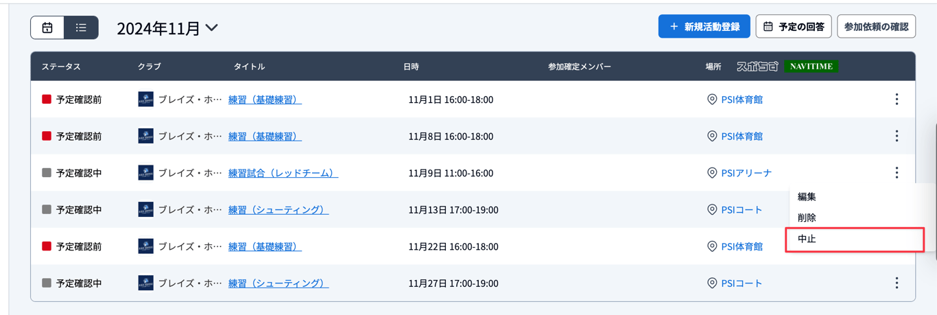 活動予定を編集・削除する|b+ サポートページ