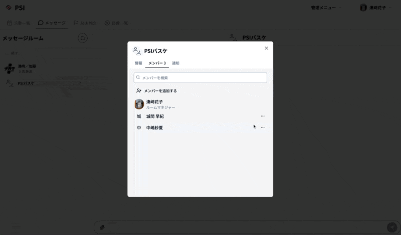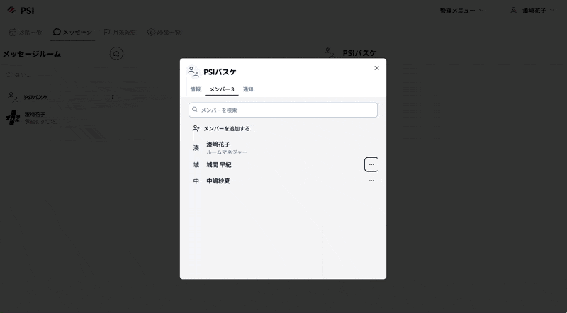 ※初期設定では、メッセージルームを作成したメンバーがルームマネジャーになります