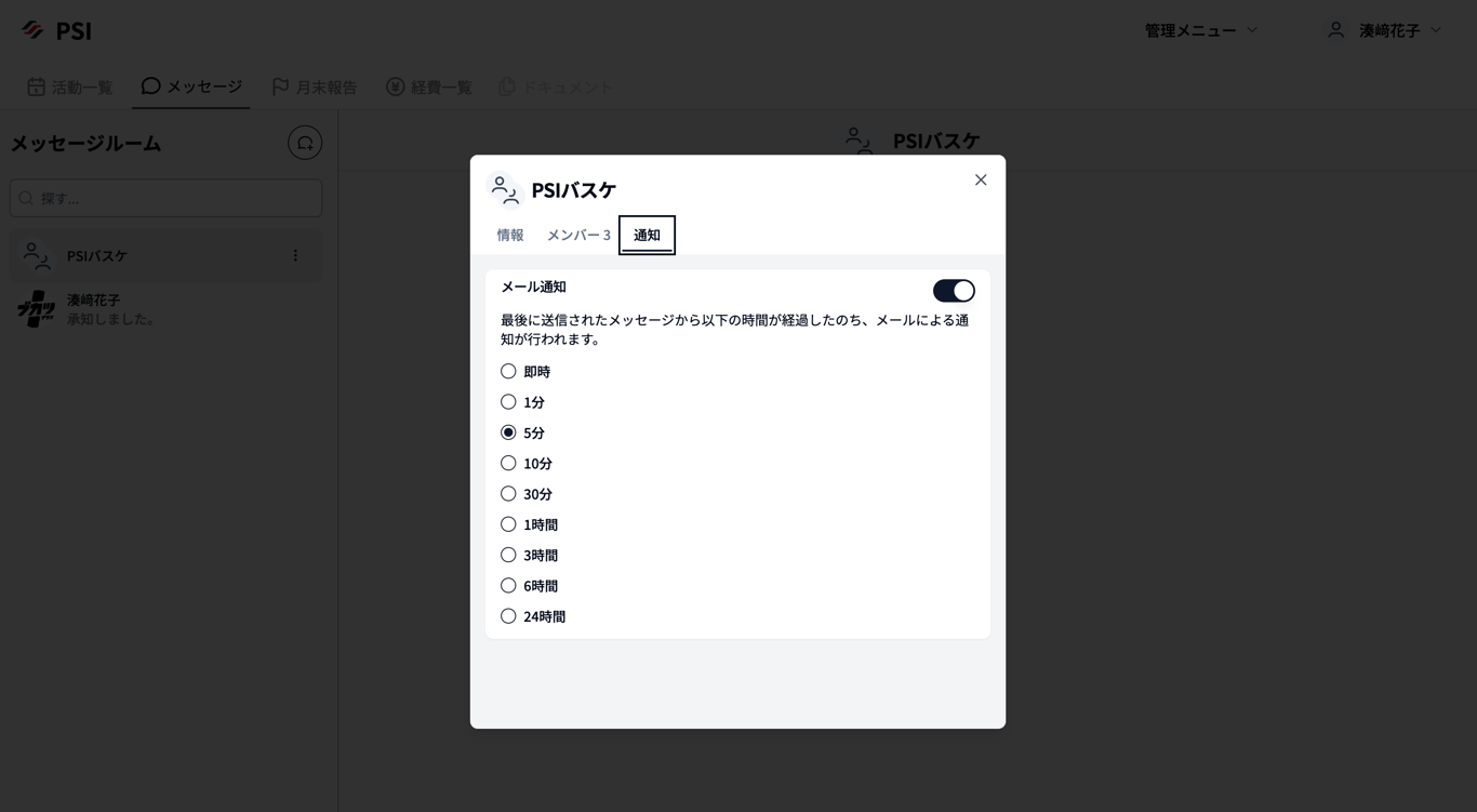※自分自身の通知設定であり、メッセージルームの相手の通知は変更できません