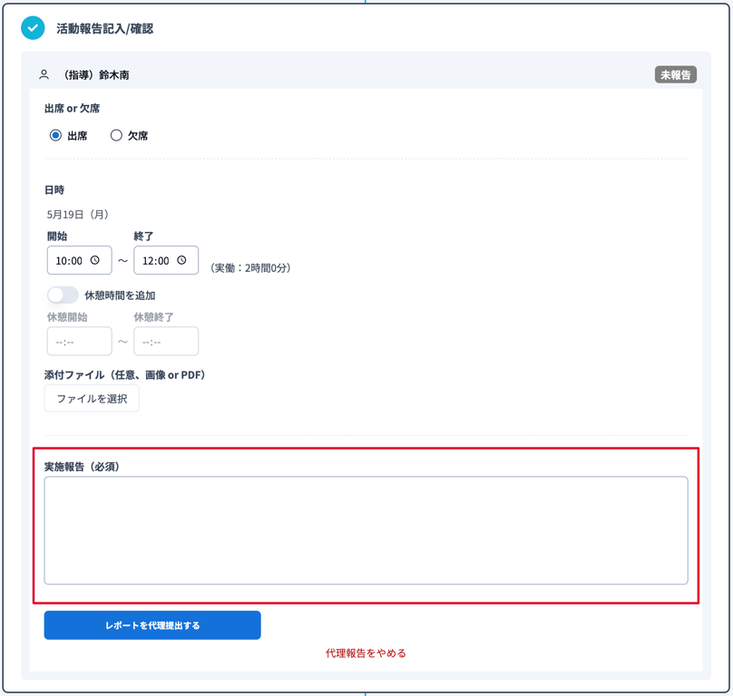 活動報告の「実施報告」をカスタマイズすることができます。