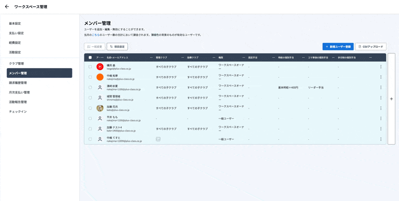 メンバー管理の背景色が薄緑色のものが有効なユーザー