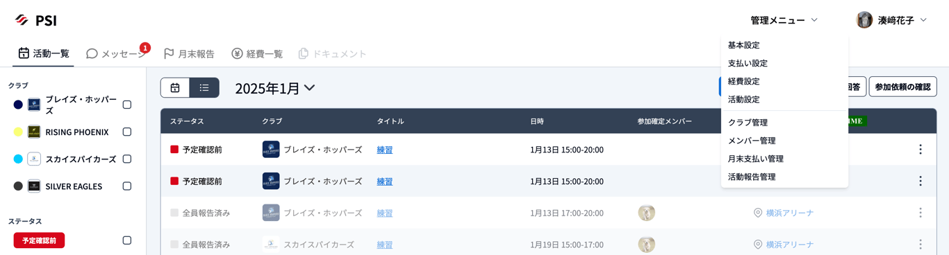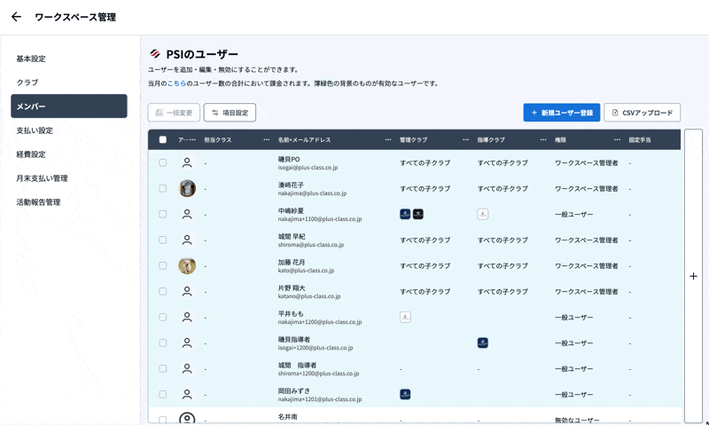 右上の「管理・設定」をクリックし、「メンバー」をクリックする