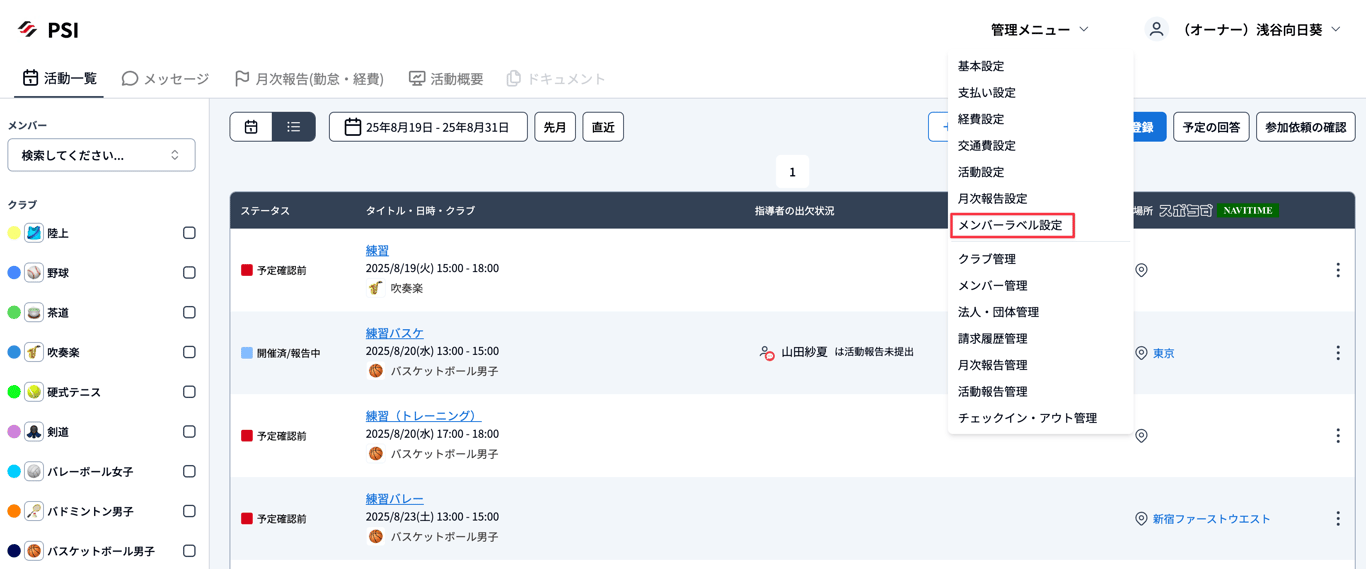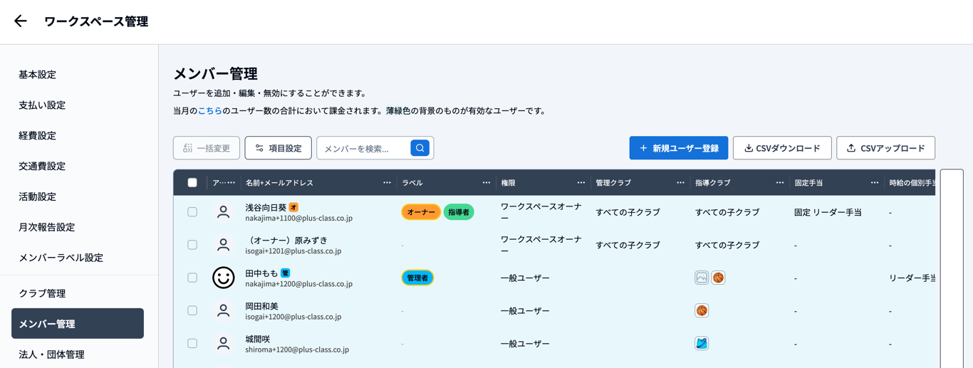 ※「ユーザーラベル設定」はワークスペースオーナーのみがアクセスできます。