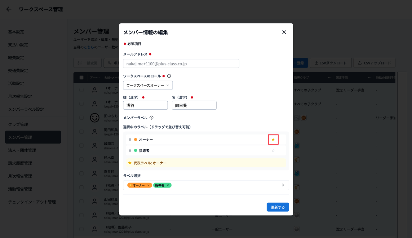 作成したラベルは、メンバー管理でメンバーに付与することができます。